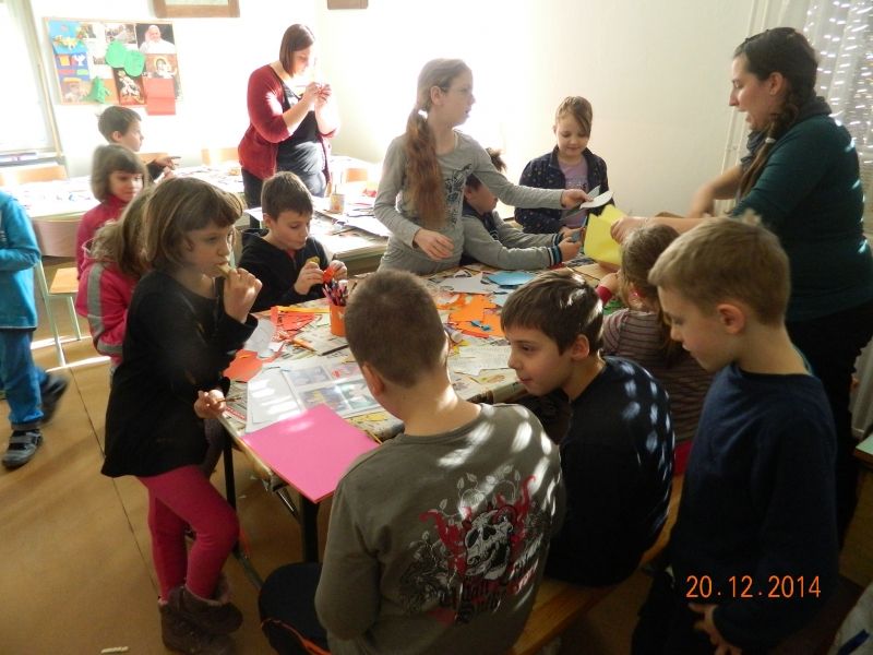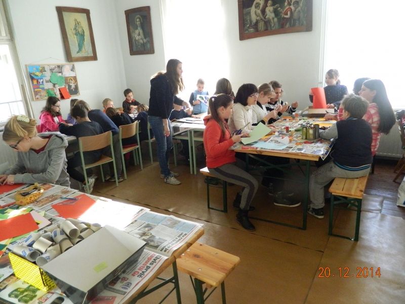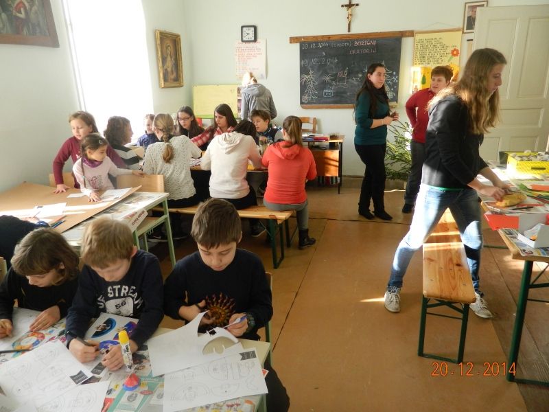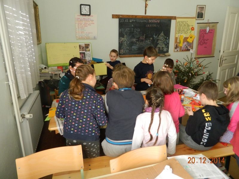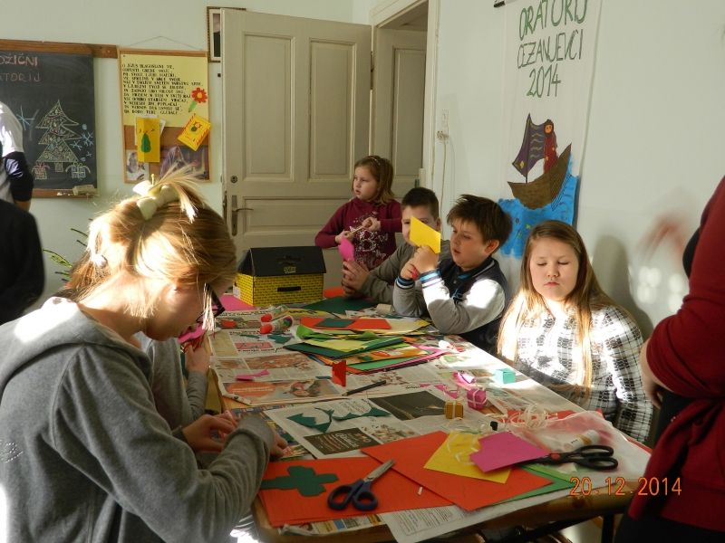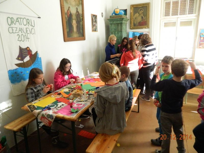 V soboto 20.12. 2014 smo imeli prvi božični oratorij, katerega se je udeležilo 31 otrok. Izdelovali smo različne okraske s katerimi smo v veroučni učilnici okrasili božično drevo. Vsak si je izdelal voščilnico na katero so se podpisali vsi udeleženci, tudi animatorji in gospod župnik. Pogovarjali smo se o Jezusovem rojstvu in o pomenu božiča. Dan smo popestrili z zabavnimi igrami v telovadnici, seveda pa ni manjkalo niti petje božičnih pesmi in pa seveda darila v spomin na današnji dan. Imeli smo se lepo, a na razočaranje večine je čas kar prehitro minil, saj smo se zabavali in zelo uživali.