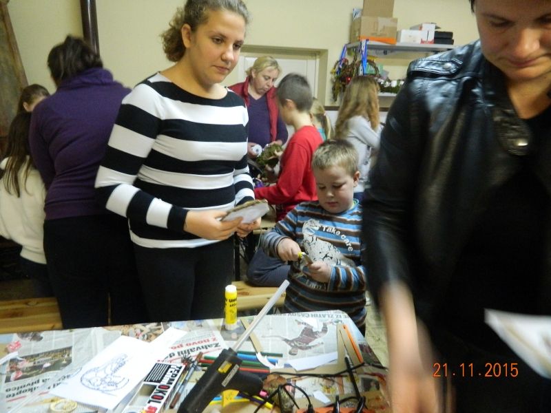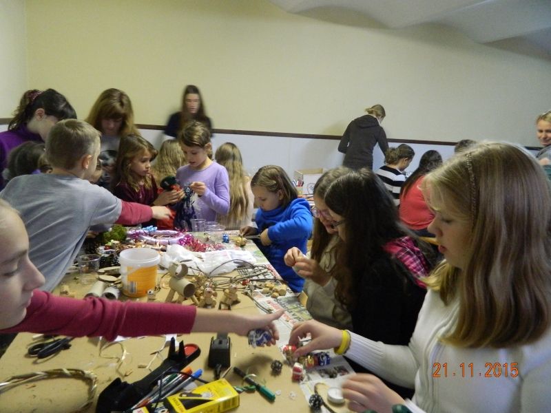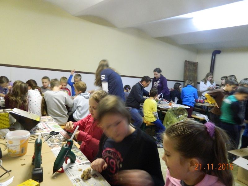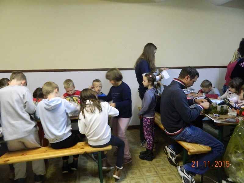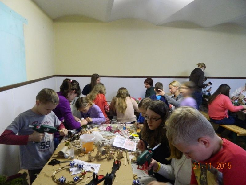 V soboto 21. 11. 2015 smo imeli v naši župniji adventne delavnice, ki se jih je udeležilo več kot 40 veroučencev. Izdelovali smo adventne venčke in druge božične dekoracije. Ob tem smo se tudi zabavali, zapeli kakšno pesem in se nasmejali. Veseli smo bili velike udeležbe in pa prispevka vseh, ki so v nedeljo pri sveti maši darovali denar za venčke ter s tem omogočili naše nadaljnje ustvarjanje. Naše končne izdelke in izdelavo teh si lahko ogledate v galeriji.