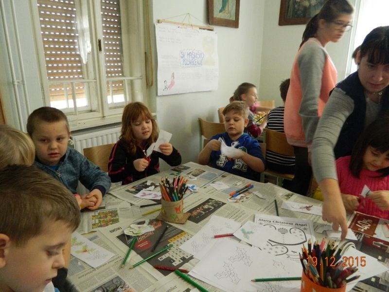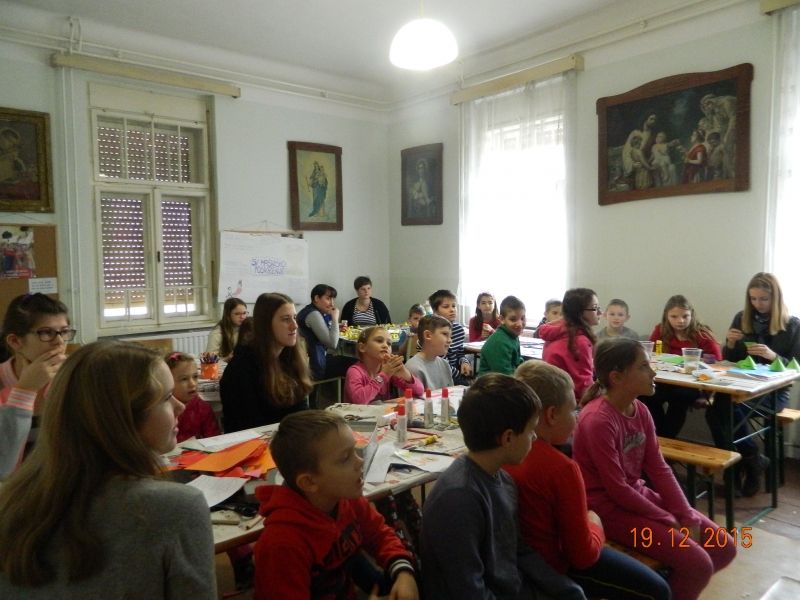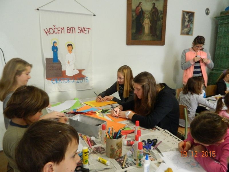 V soboto 19.12.2015 smo imeli 2. božični oratorijski dan, ki se ga je udeležilo 23 otrok. Za njih pa je skrbelo 7 animatorjev. Poslušali smo božično pravljico z naslovom Angelček brez perutničk in se naučili, da vedno ko naredimo kakšno dobro delo en angelček dobi perutničke. Izdelali smo okraske s katerimi smo okrasili božično drevo. Tega smo postavili v cerkvi, da si bodo lahko tudi drugi ogledali naše ustvarjanje. Svojo energijo smo porabili pri igrah v telovadnici, kjer smo se šli igro med dvema ognjema in v skupinah tekmovali v različnih igrah. Vsakega udeleženca je čakalo majhno darilo. Otroci so domov odšli nasmejani in obljubili, da se vidimo na naslednjem oratoriju.