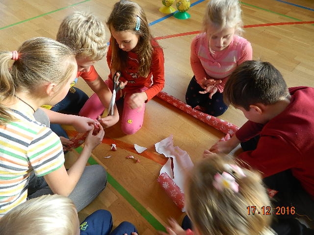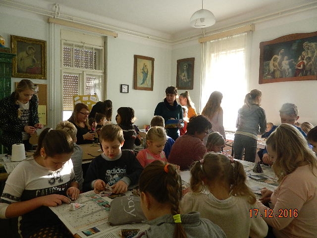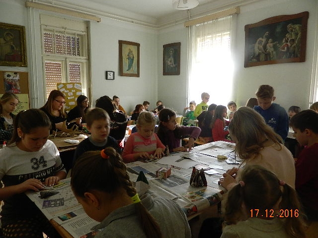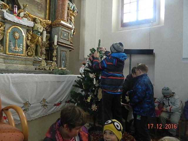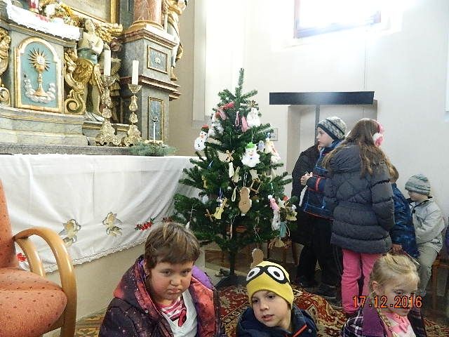 V soboto 17. 12. 2016 je v naši župniji potekal božični oratorijski dan. Zbralo se je 34 otrok, za katere je skrbelo 9 animatorjev. Najprej so otroci poslušali božično pravljico o Jezusovem rojstvu, po prebrani zgodbi pa smo se pogovarjali o sveti družini in pomenu božiča. Nato so otroci izdelovali božične okraske- snežake, angelčke, zvončke ter smrečice, s katerimi so v cerkvi okrasili božično drevo. Vsak izmed otrok je obesil okrasek in naše božično drevo zdaj bogato okrašeno skupaj z otroci nestrpno čaka božič. Ob krašenju so v cerkvi peli božične pesmi ter tako ustvarili pravo božično vzdušje. Iz cerkve smo se podali v telovadnico, kjer so otroci po skupinah tekmovali v različnih igrah. Najbolj zabavne so bile božično obarvane igre, v katerih so zavijali darila ter krasili božično drevo, ki ga je predstavljal eden od tekmovalcev. Na koncu so otroci povedali svoje vtise o preživetem dnevu, nato pa so jih animatorji obdarili z majhnim darilom pozornosti. Domov so se odpravili polni božičnih vtisov, veseli ter zadovoljni s preživetim dnevom.